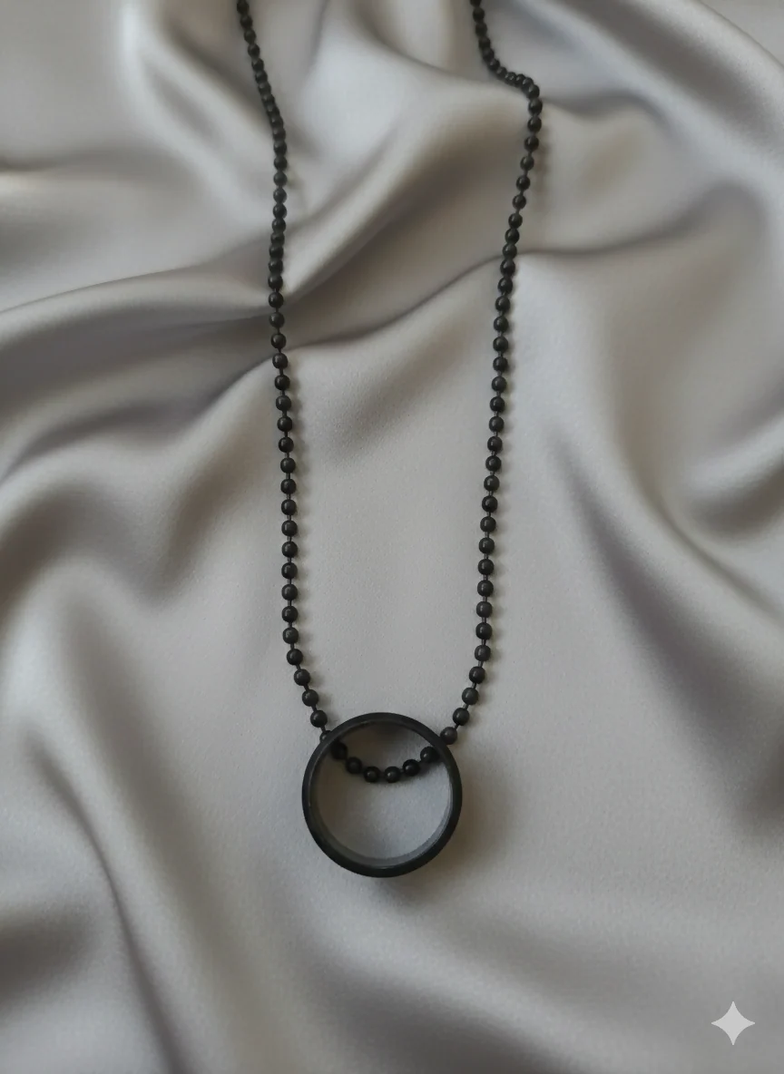 Elevate your everyday style with this elegant black round pendant necklace. Designed with a sleek circular pendant and a classic black beaded chain, it offers a modern minimalist look. Lightweight, stylish, and comfortable, it’s perfect for daily wear, parties, and gifting. Made in India with a premium finish.